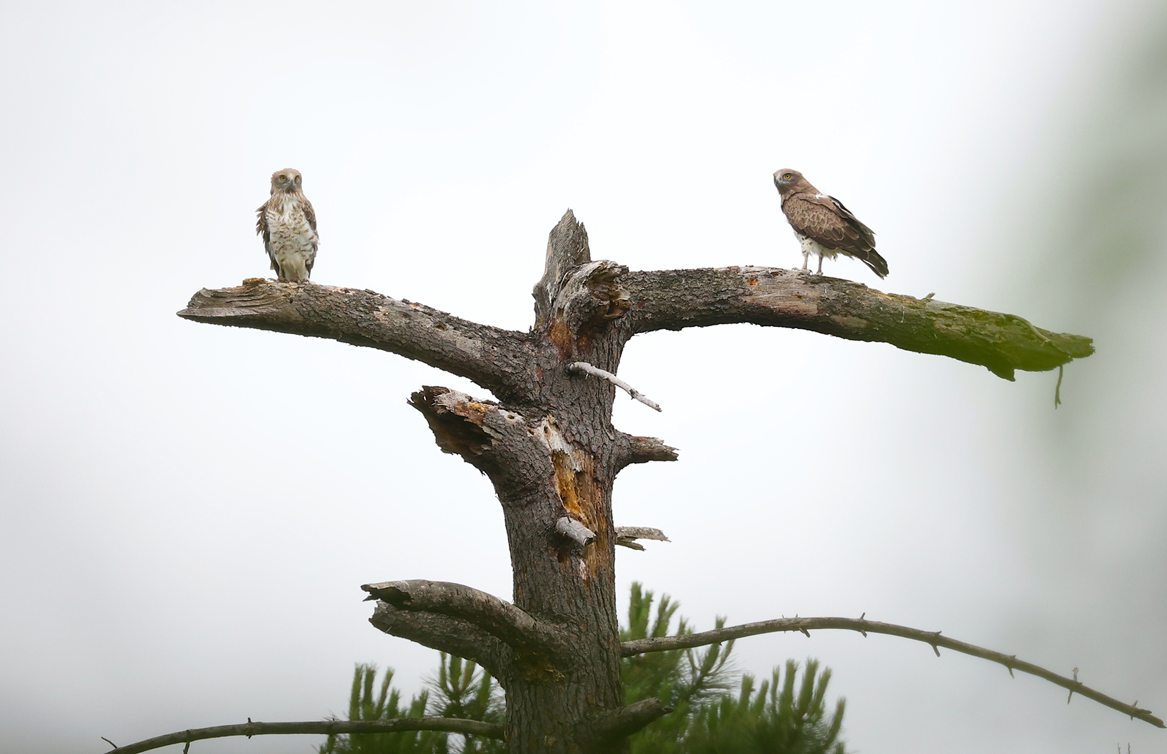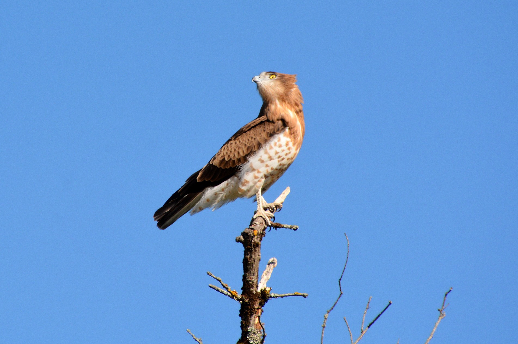Le circaète Jean-le-Blanc est un grand rapace diurne migrateur dont l’envergure peut aller jusqu’à 1m85. C’est un rapace discret, sensible au dérangement humain qui niche en Charente, uniquement dans des pins. Il se nourrit quasi exclusivement de reptiles, en particulier de serpents. Les couples sont fidèles entre eux et se reproduisent d’années en années dans le même secteur, voire sur le même nid. La femelle pond un unique oeuf en avril, qui éclôt environ 1 mois et demi plus tard. L’envol du jeune a ensuite lieu en août.