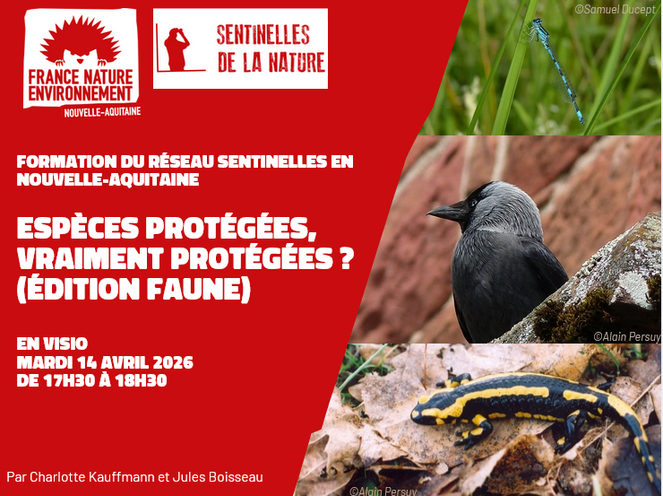 Vous êtes naturaliste amateur ou chevronné, et vous vous demandez ce que veut vraiment dire le statut d’espèce protégée ? Le réseau Sentinelles de la Nature en Nouvelle-Aquitaine vous propose un webinaire consacré à la faune protégée. Ce sera l’occasion de voir comment le Code de l’environnement définit une espèce protégée et quelles sont les limites de ce statut. Nous reviendrons également en détail sur le dispositif de dérogation espèces protégées.