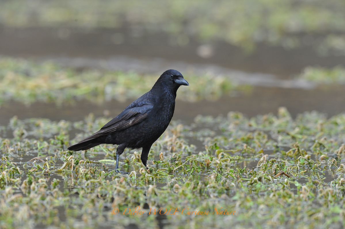 La Corneille noire est présente en Europe de l’Ouest, de la Grande-Bretagne à l’Allemagne et du Danemark jusqu’à la moitié nord de la péninsule ibérique. En Italie, en Europe de l’Est et en Asie, elle est remplacée par une espèce très proche, la Corneille mantelée (Corvus corone cornix). Celle-ci se reconnaît à son plumage bicolore, au corps gris. Pouvant être confondue avec le Corbeau freux, la Corneille noire s’en distingue par la présence de plumes à la base de son bec, qui est de forme plus arquée, et les reflets bleu-vert de son plumage. La Corneille ne migre pas et s’adapte aux changements de température entre été et hiver. Elle consomme surtout des végétaux (céréales, racines, fruits, glands, graines), mais aussi des insectes et des vers, et parfois des charognes. Les corvidés sont des équarrisseurs naturels qui éliminent les cadavres d’autres oiseaux ou de petits mammifères, ce qui assure par exemple un nettoyage gratuit de nos routes où meurent chaque jour d’innombrables animaux sauvages victimes de collisions. Le régime riche en graines et en fruits de cette omnivore contribue également à la dissémination des graines et donc à l’entretien de la biodiversité. Elles peuvent aussi se rendre très utiles en mangeant des parasites sur le dos du bétail. Source : LPO