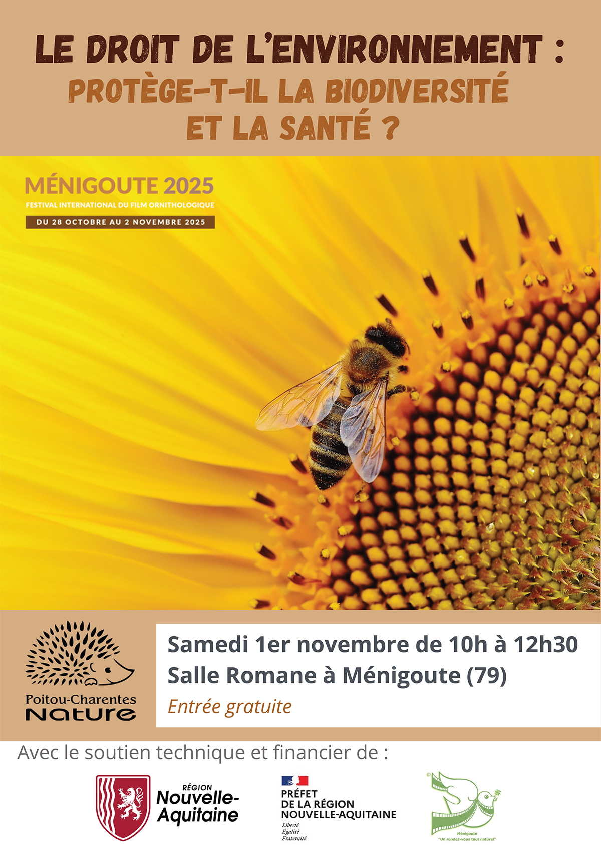 Conférence organisée par Poitou-Charentes Nature à l’occasion du Festival International du Film Ornithologique de Ménigoute avec le soutien de l’association Mainate, du Conseil Régional Nouvelle-Aquitaine et de la DREAL Nouvelle-Aquitaine.