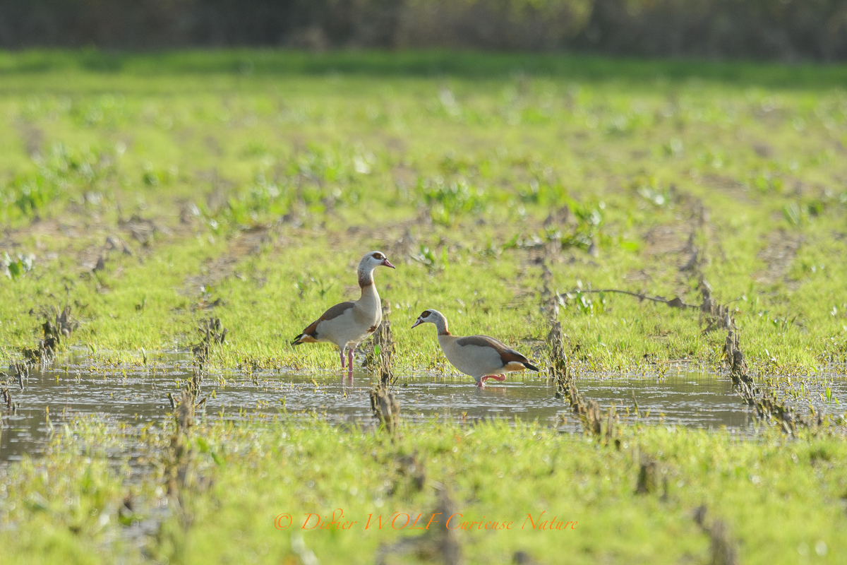 L’Ouette d’Égypte (qui est en fait plus apparentée aux tadornes qu’aux oies) est une espèce d’origine africaine, introduite de longue date (XVIIIe siècle) au Royaume-Uni, puis aux Pays-Bas. Depuis la fin du vingtième siècle, elle a vu sa population exploser, en partie grâce au développement de nombreux plans d’eau artificiels. Elle est présente surtout aux Pays-Bas et en Allemagne (quelques dizaines de milliers de couples). Elle s’installe en France depuis le début du XXIe siècle surtout. Elle occupe essentiellement le nord-est du pays (250 couples) et progresse très rapidement depuis 2009. Cette espèce occupe les gravières, les prairies et les bois inondés pour se reproduire. En France, les pontes sont notées de mars à mai. Elle est essentiellement herbivore. En erratisme (en dehors de leur aire de répartition habituelle comme lors d’erreurs de migration ou par adaptation aux conditions climatiques ou alimentaires), on peut rencontrer l’Ouette d’Égypte sur tous les plans d’eau. Elle fait partie de ces espèces allochtones dites « invasives » qui font de plus en plus souvent l’objet de rejet de la part des pouvoirs publics. Source : LPO