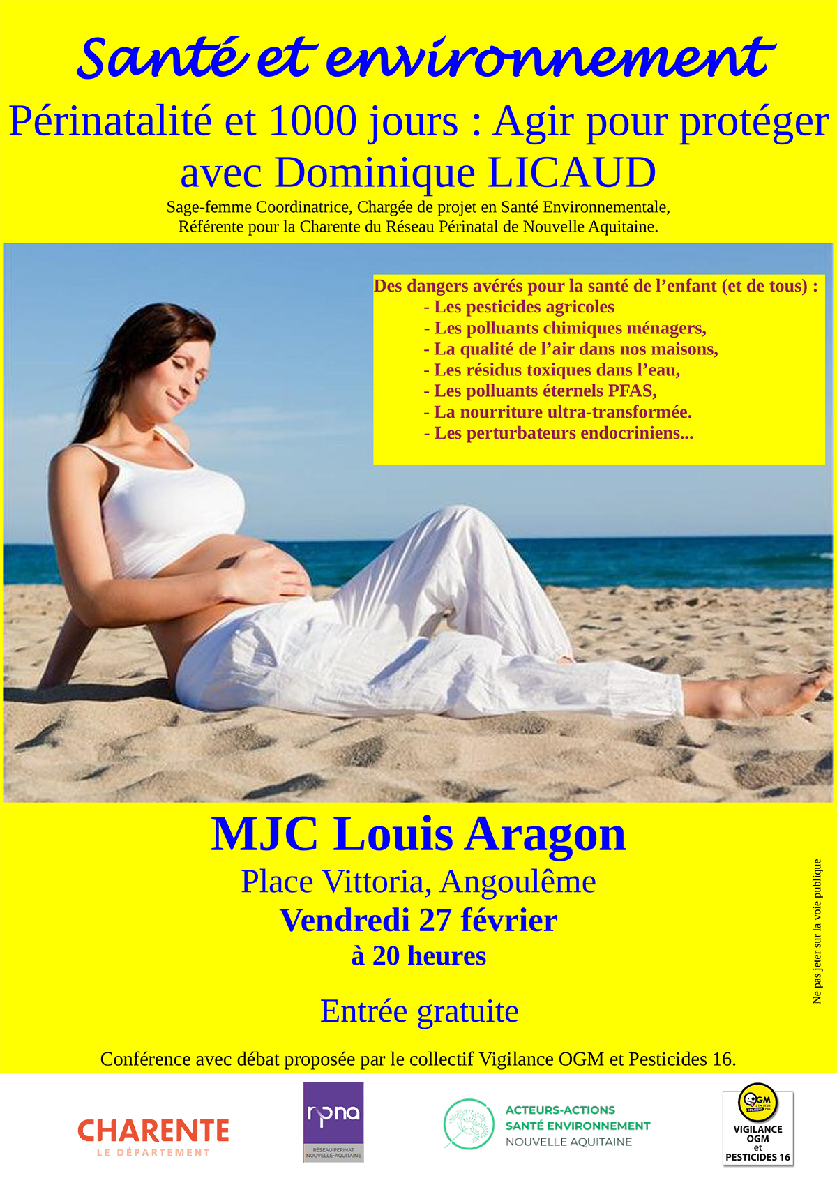 En Charente, des professionnels de santé réagissent et préconisent des alternatives pour nous prémunir des maladies causées par un environnement empoisonné. Parmi ces professionnels de santé engagés et bienveillants, Dominique Licaud, Sage-femme coordinatrice, Chargée de projet en Santé Environnementale et Référente pour la Charente du Réseau Périnatal de Nouvelle Aquitaine, a accepté notre invitation pour animer cette conférence.